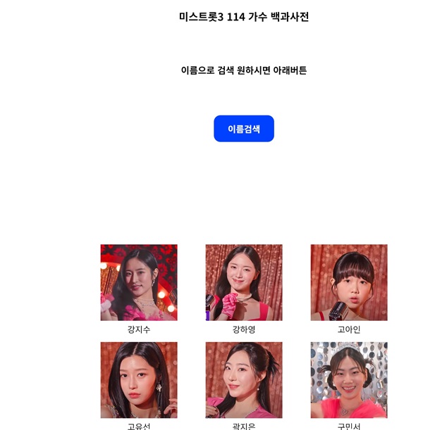 기존에 정보 올렸던 가수들은 빼고 자료가 없더라도 일단 게시물은 하루에 올릴 수 있을만큼 올려야 본방송전에 페이지가 완전히 오픈 될 것 같습니다.